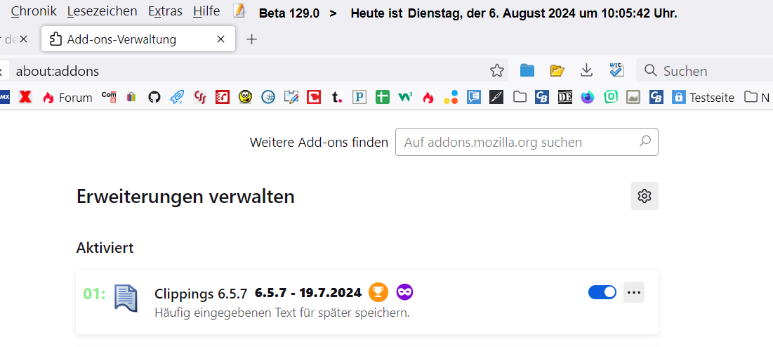 Anscheinend muss es auch ein Benutzerskript about-addons-verbose.uc.js oder so ähnlich geben, das in Zeile 52 eingelesen wird. Oder ist das der Name dieses Skriptes? Dann sollte es aber auch ganz oben angegeben werden, sonst funktioniert das Skript nicht, wenn man es unter einem anderen Namen abspeichert.