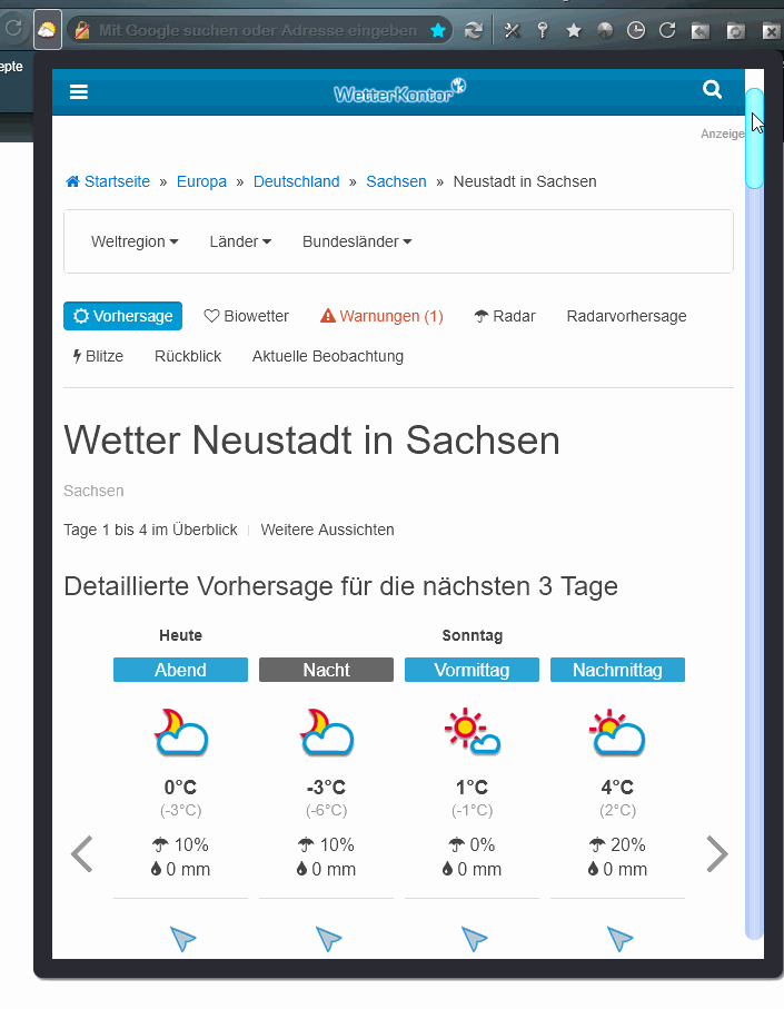 Ja und für Deutschland funktionieren Regenradar und Regenradar-Prognose ebenfalls nicht. Für Regenradar kann man niederschlagsradar.de nehmen, aber ich finde keinen Unterschied zur Regenradar-Prognose. Für das Weltwetter könnte man https://www.wetterdienst.de/Weltwetter/ nehmen.