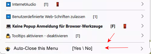 • Im Skript aboutconfig_menu.uc.js wäre die Option Auto-Close this Menu > Yes, No im Dropdown-Menü sehr nützlich.