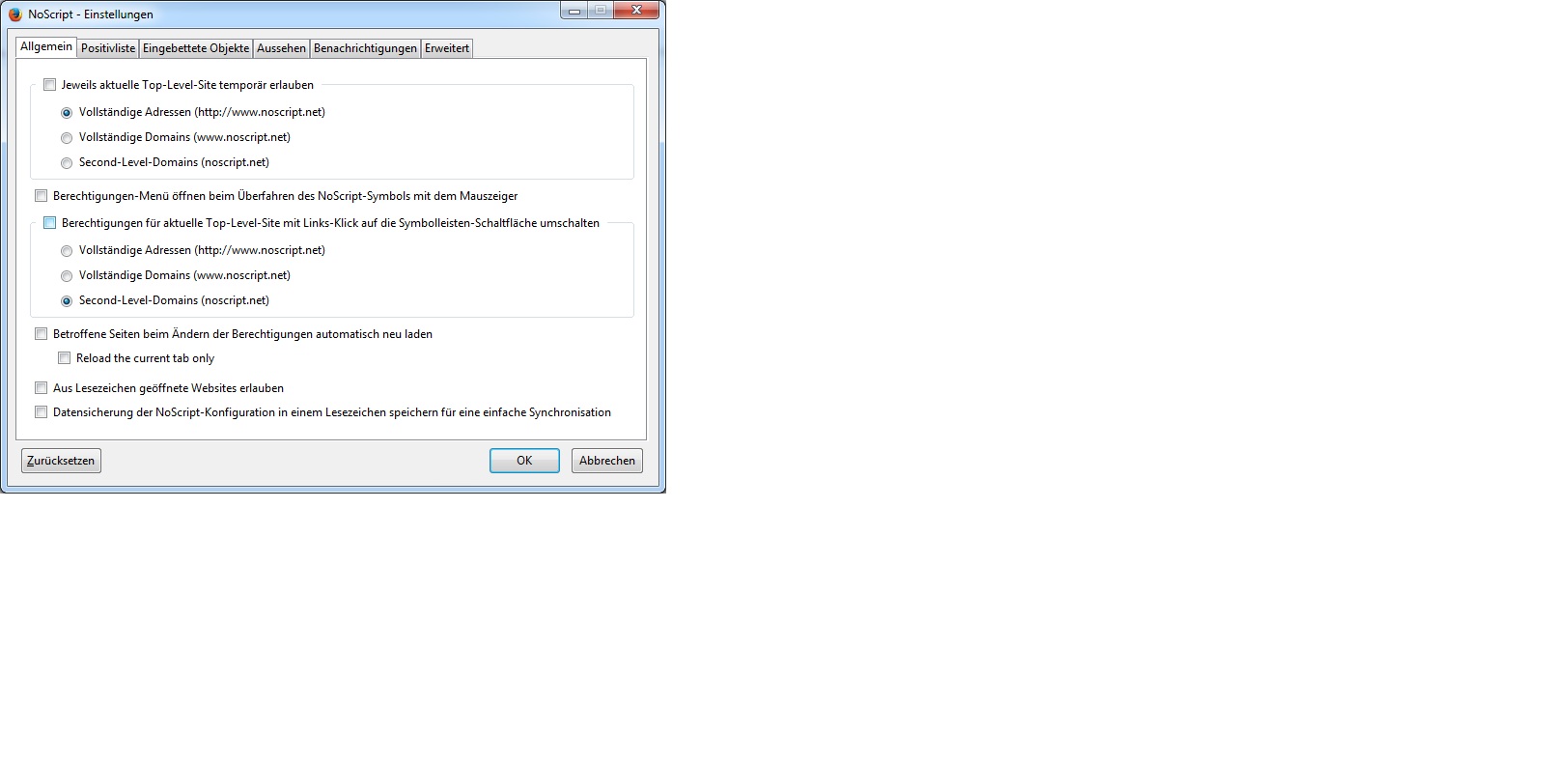 Das Addon No Script hat sich vor einiger Zeit selbst zurückgesetzt.