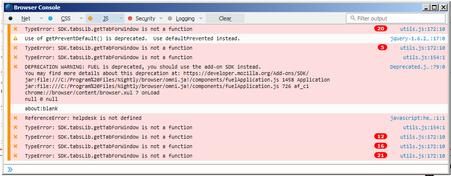 Könnte das vielleicht an userChromeJS liegen? Seit dem ich das installiert habe, funktionieren ja auch #10 und #12 nicht mehr, die vorher aber liefen.