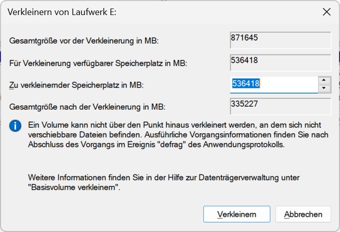 Also verkleinern bietet Windows sehr wohl an, aber ob das jetzt ohne Datenverlust klappt, teste ich nicht aus. Rein vom Angebot sprich der Leseart her sollte das aber klappen, kann aber auch sein, das die Datenträgerverwaltung mittlerweile aufgebohrt wurde und das der Eine oder Andere aufgrund mangelnder Nutzung nicht mitbekommen hat. Ich zum Beispiel, weil andere Software zur Nutzung gekauft...