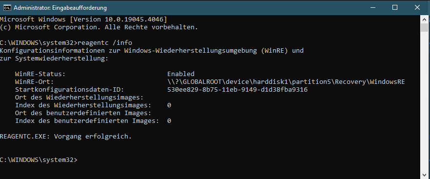reagentc /enable (anschalten, umd ie Änderungen zu übernehmen)
