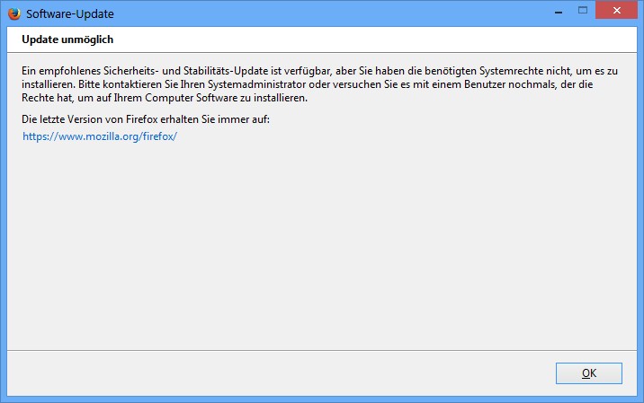 Überschrift "Update unmöglich" dann blah blah und ich hätte nicht die benötigten Systemrechte.
