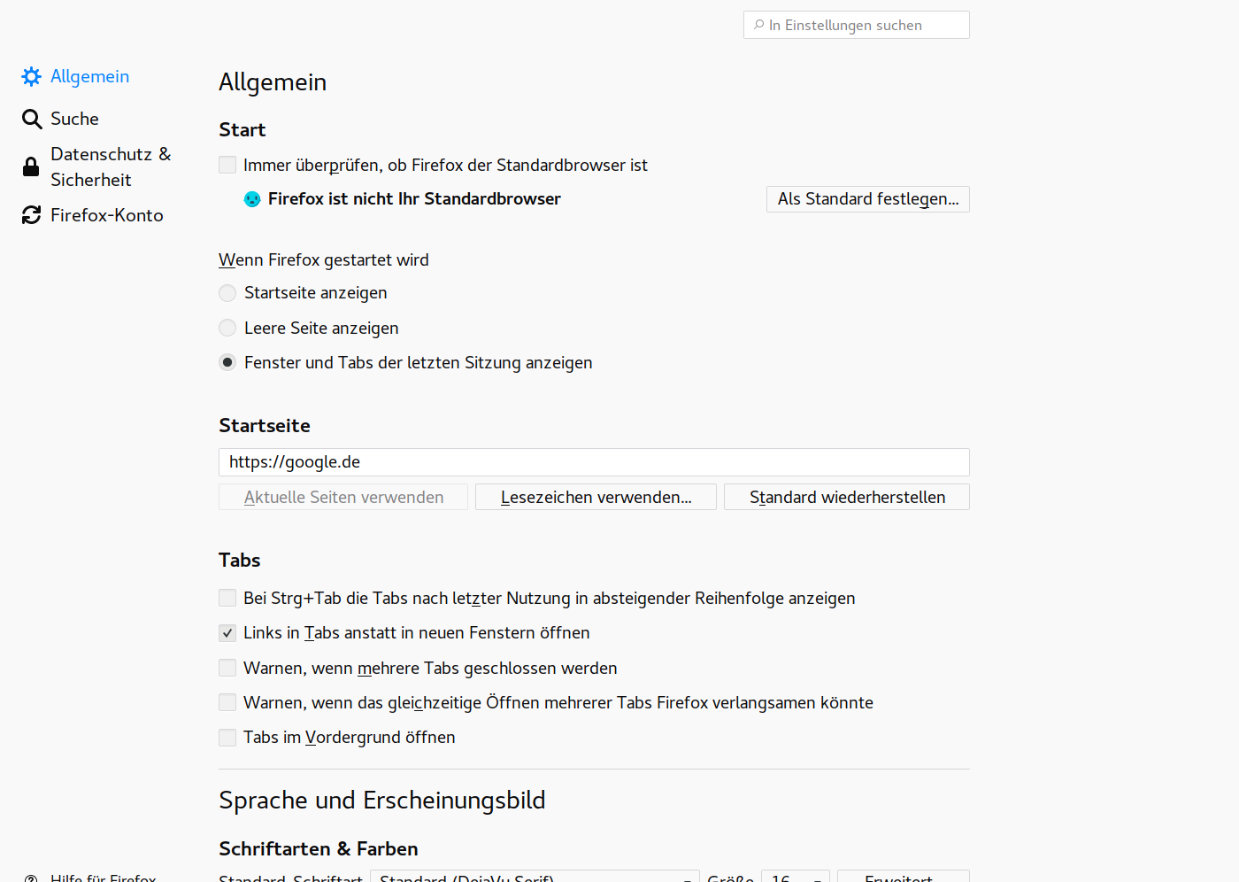 - Wenn Firefox gestartet wird: Fenster und Tabs der letzten Sitzung anzeigen