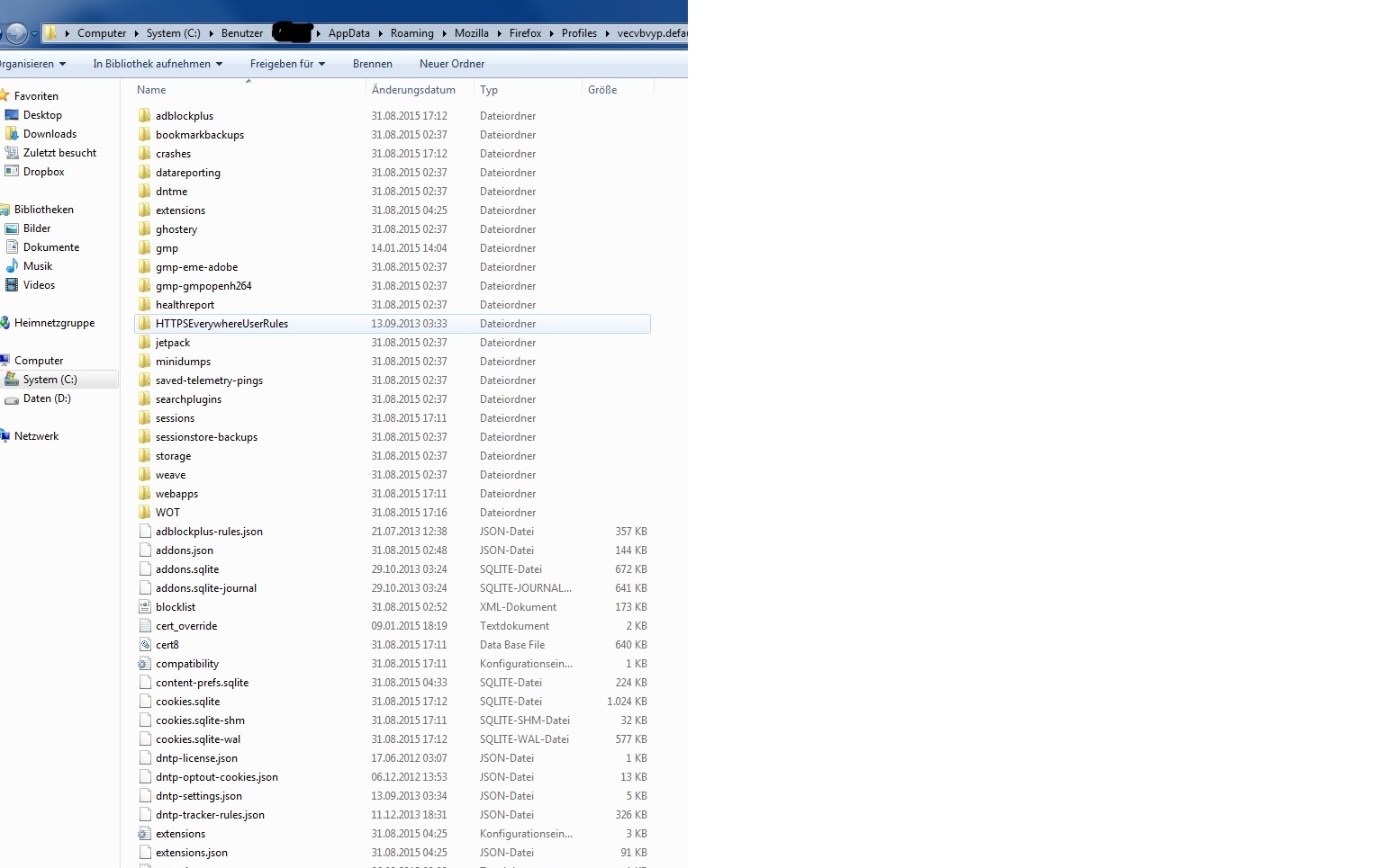 Als weiterer Profilordner ist noch ein "JonDoFox" (hatte ich früher mal ausprobiert) angelegt, den ich jedoch aktuell nicht nutze, allerdings auch nicht gelöscht habe....