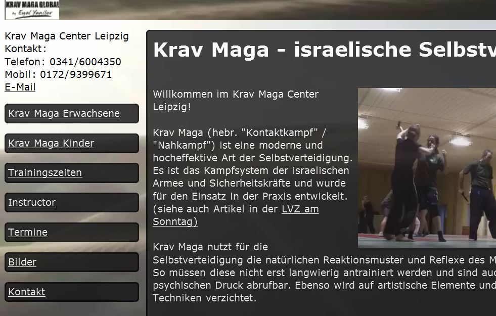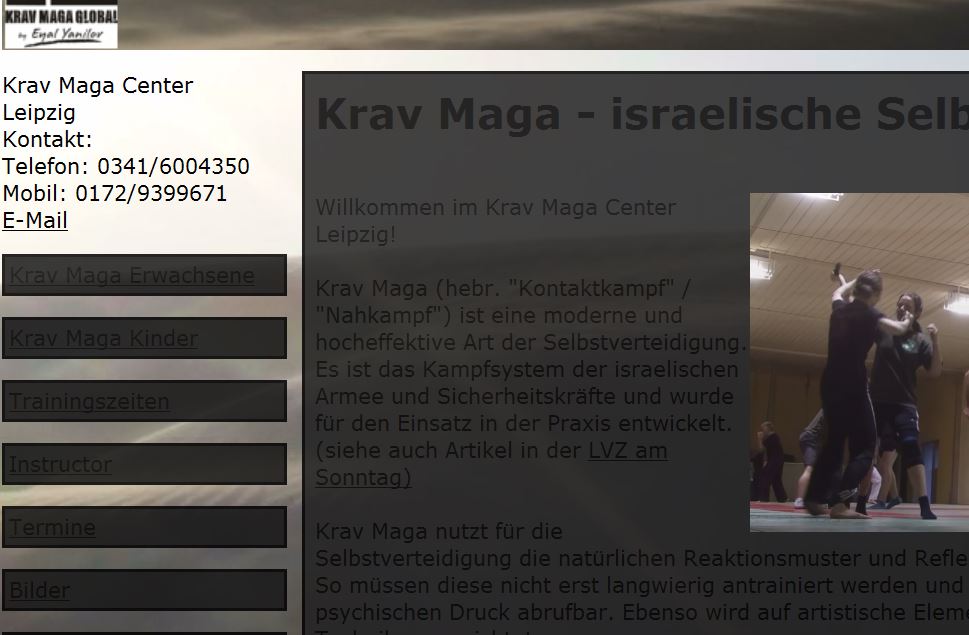 Eine Seite (krav-maga-leipzig.de) wird original mit FF wird so dargestellt: