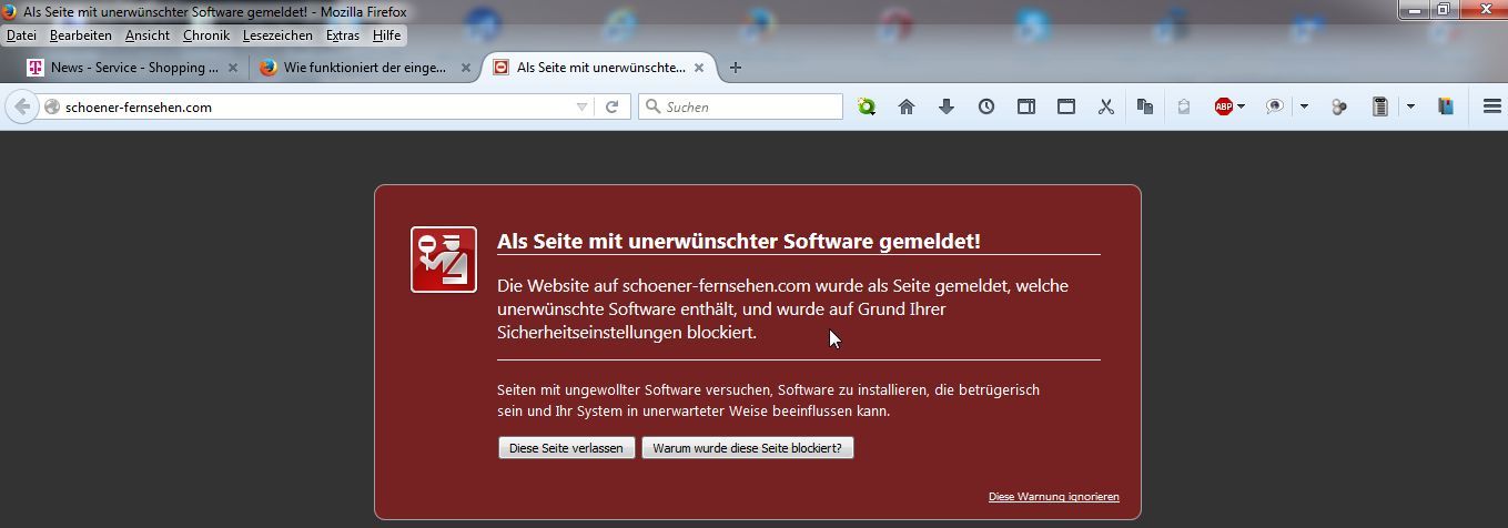 Doch heute ein Schock:Firefox blockiert http://schoener-fernsehen.com/
