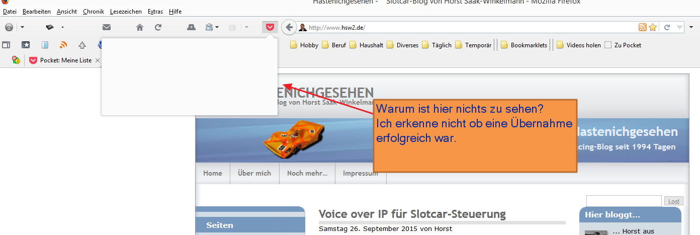 Bei Pocket-Übernahme erscheint kein Text