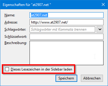Rechtsklick auf das Lesezeichen - Eigenschaften - Häkchen bei Dieses Lesezeichen in der Sidebar laden entfernen