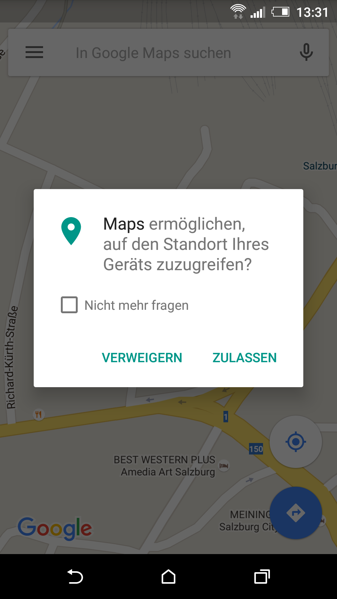Mit deaktivierter Standort-Berechtigung funktioniert auch die Standortbestimmung von Google Maps nicht.
