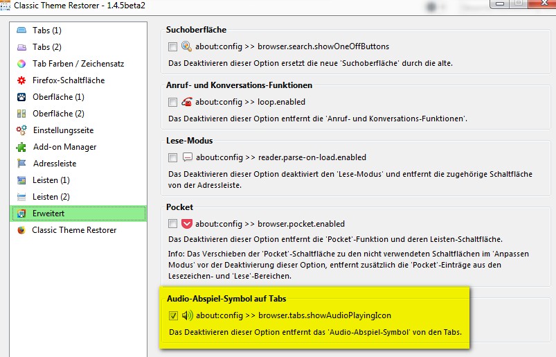 nach update auf den neuen firefox vor ein paar tagen existierte die funktion "Einzelne Tabs in Firefox stummschalten" , der lautsprecher war in jedem tay sichtbar.