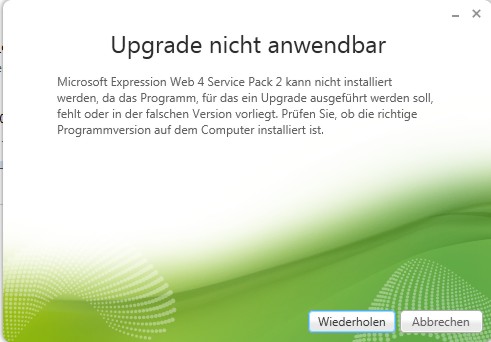 Ansonsten: Klar habe ich den Download gelehrt. Und auch erneut einen Download gemacht. Bei mir kommt nach dem Ausführen immer die gleiche Fehlermeldung, siehe Anhang. Ich hab aber Microsoft Expression Web 4 installiert und arbeite auch damit. Es funktioniert auch.
