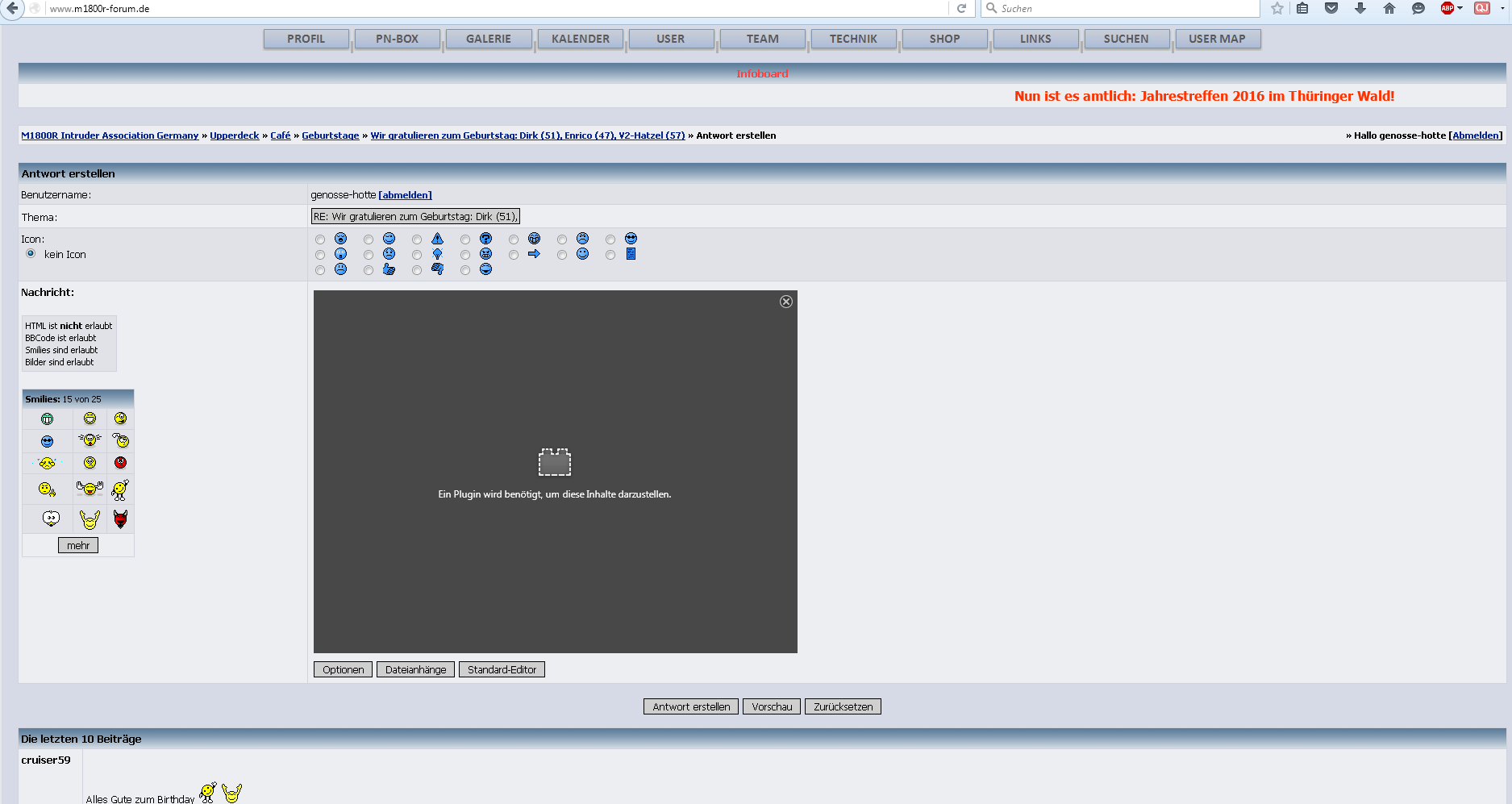 ich habe mein System neu aufgesetzt. Nun habe ich in meinem Stamm Motorrad Forum nicht mehr die Möglichkeit zu antworten.