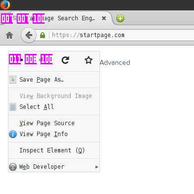 Mein Firefox zeigt seit kurzem über der Tableiste, im Kontextmenü und bei Tooltips pinke Quadrate mit Nummern an (siehe Screenshot). Es scheint mit irgendwelchen Einstellungen zusammenzuhängen, denn wenn ich ein neues Firefox Profil anlege sind sie verschwunden. Da ich jedoch gerne meine Einstellung und Addons, ... nicht verlieren möchte, bzw. neu anlegen würde ich gerne wissen wie ich das Problem beheben kann. Weiß jemand Rat?