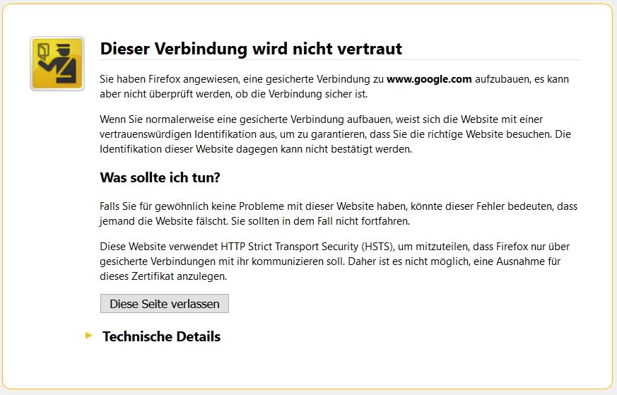 Bei mir hat es aber nur mit Firefox Probleme gegeben. Bei Chrome und IE trat es nicht auf... Hatte auch andere HTTPS Seiten mit Firefox öffnen wollen, die funktionierten auch... Bei mir was es ausschliesslich die Kombi FF und Google