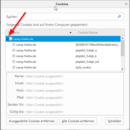 1) Wie kann ich ALLE Cookies sichtbar machen (und bereinigen) ?