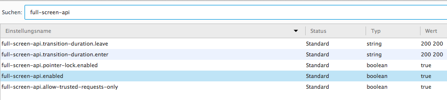 In der about:config steht bereits seit immer : full-screen-api.approval-required auf false daran kanns also nicht liegen.