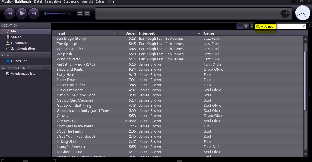 Dort und wohl auch in anderen Playern ist ein Suchfeld... dort tippe ich einen Teil des Titels, der Band, der Musikrichtung oder meinetwegen auch des Albums ein (Danach ist hier allerdings nicht gespeichert) und schon erhalte ich eine Liste....