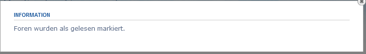 Seit der neuen Version der Forensoftware erscheint jedes Mal diese Meldung, wenn ich auf Themen als gelesen markieren bzw. Foren als gelesen markieren gehe: