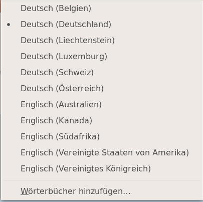 Ich wollte die Rechtschreibung auf Deutsch umstellen (Siehe Bild).