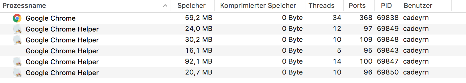 300 MB währendessen Google Chrome nur 20 MB verbraucht?