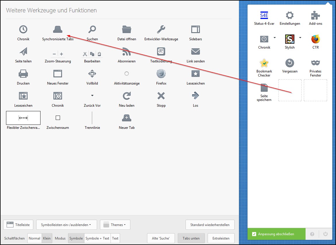 in der FF version 45.0.1 ESR gibt es im menü/einstellungen den neuen punkt "syncronierte tabs"