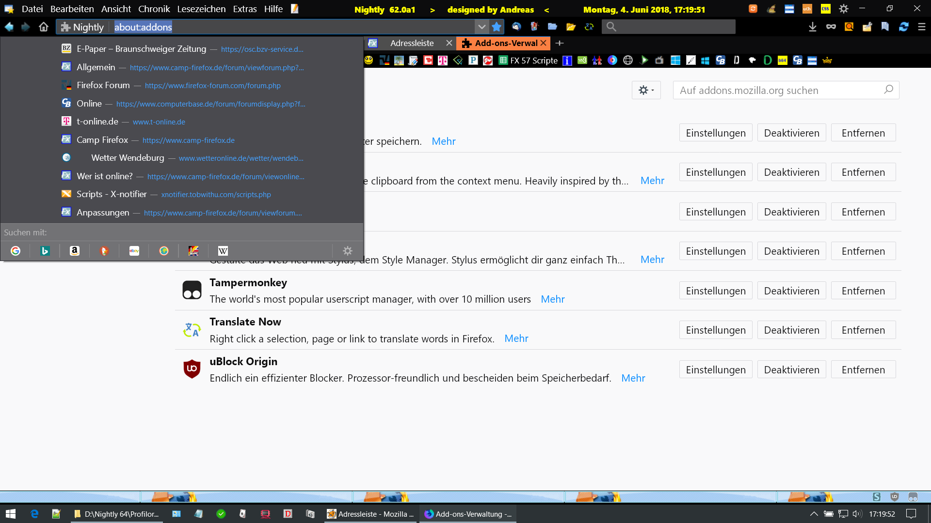 Aber nur wenn ich alle Adddons deaktiviere,schalte ich eins hinzu verändert sich das verhalten bis hin zu gar keine