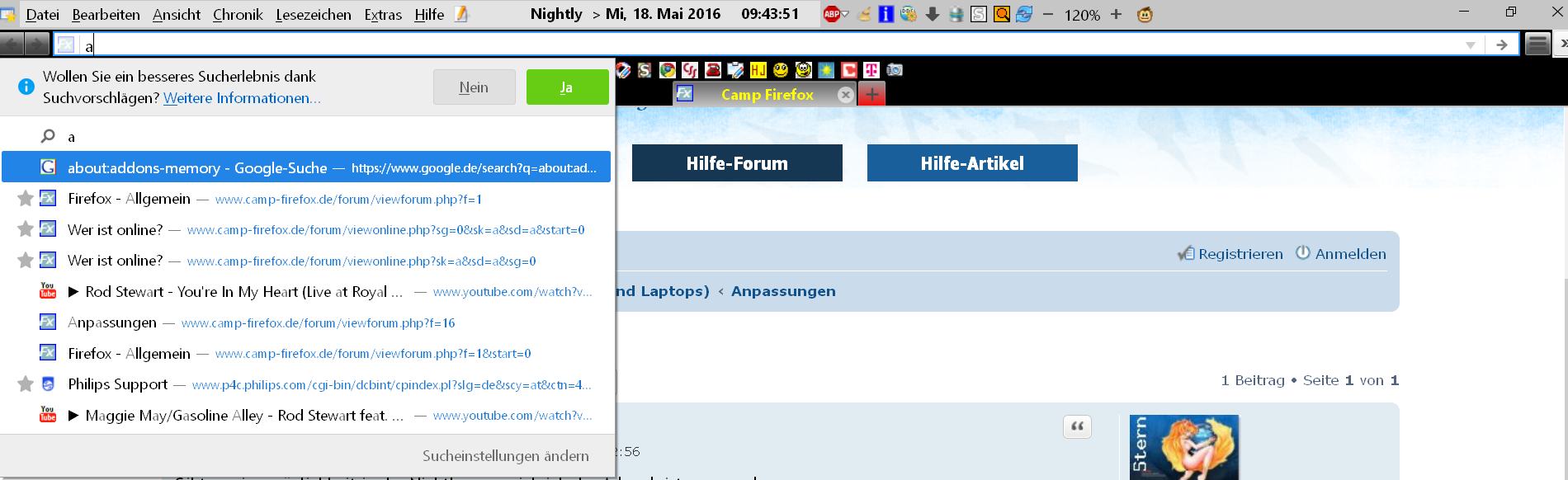 Gibt es eine möglichkeit in der Nightly ,wenn ich ich der Adressleiste was suche