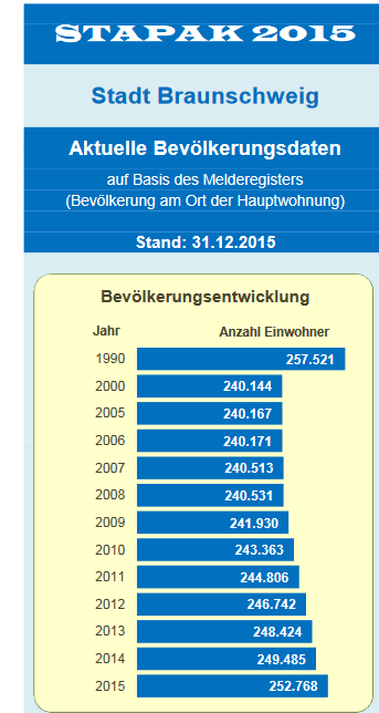 • Nun ja, meine Zahlen besagen, das Braunschweig ca . 253 000 Einwohner hat....