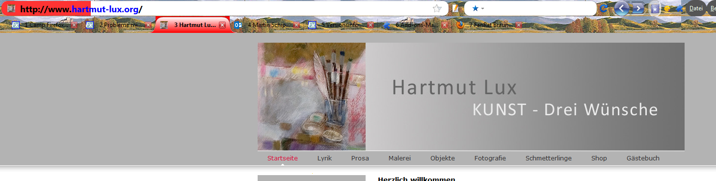 - Wird die Seite mittlerweile auch mit geblockten Scripts fehlerfrei in Windows und ggf. auch anderen Betriebssystem sichtbar, also mit dieser header.jpg, in der links ein Pinseltopf und im Hauptteil "Hartmut Lux - 3 Wünsche" als Schriftzug zu sehen ist?