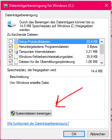 Ja, eine Datenträgerbereinigung führe ich fast regelmäßig durch. Heute, nach dem Neustart, hatte ich auf C: 2,23 GB frei. Die Datenträgerbereinigung flüsterte, daß sie 1,1 GB freigeben würde. Nach Adam Riese hätten dann 3,33 GB frei sein müssen. Es sind aber nur 2,73 GB (Arithmetik frei nach Windows!)!