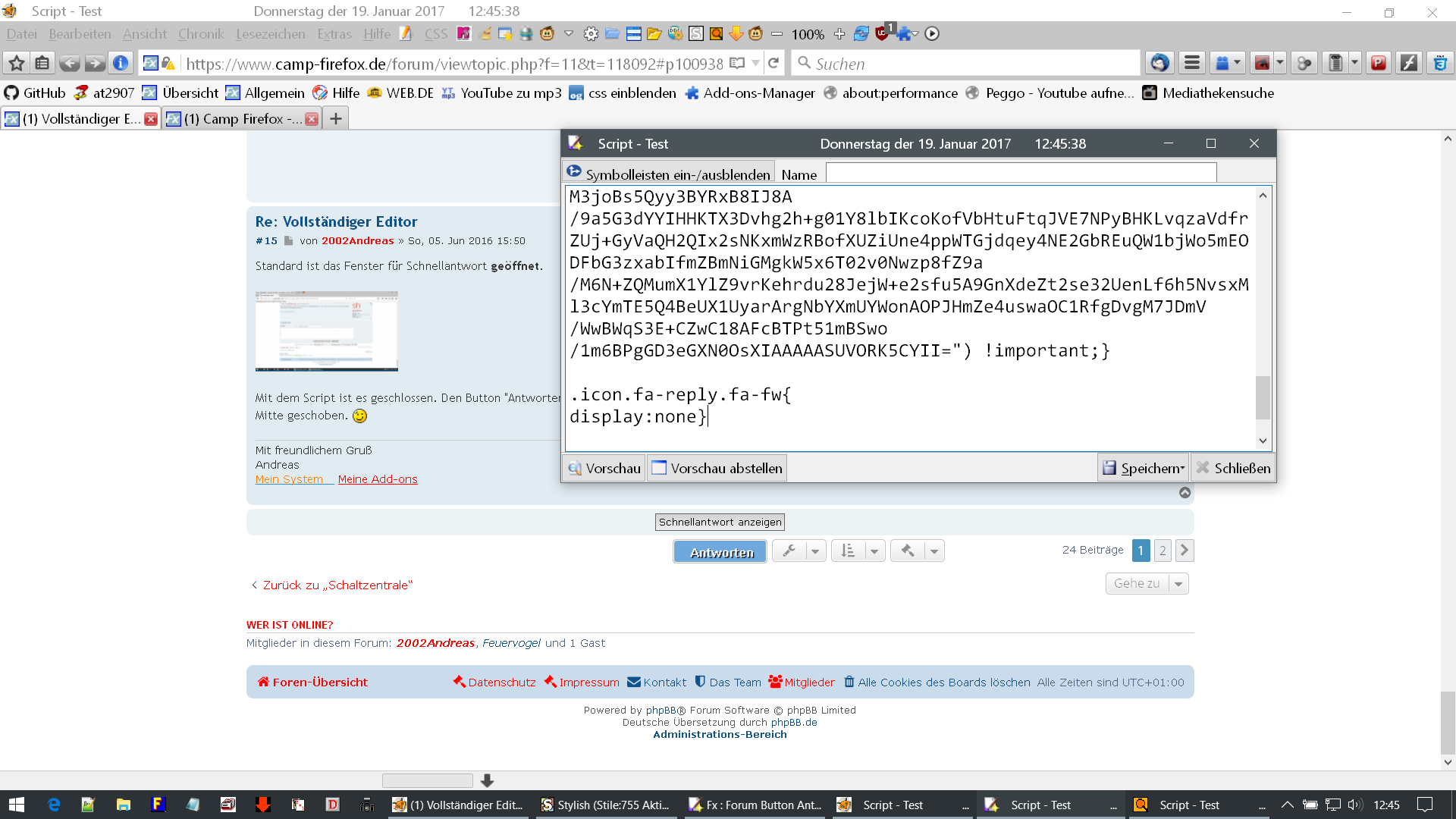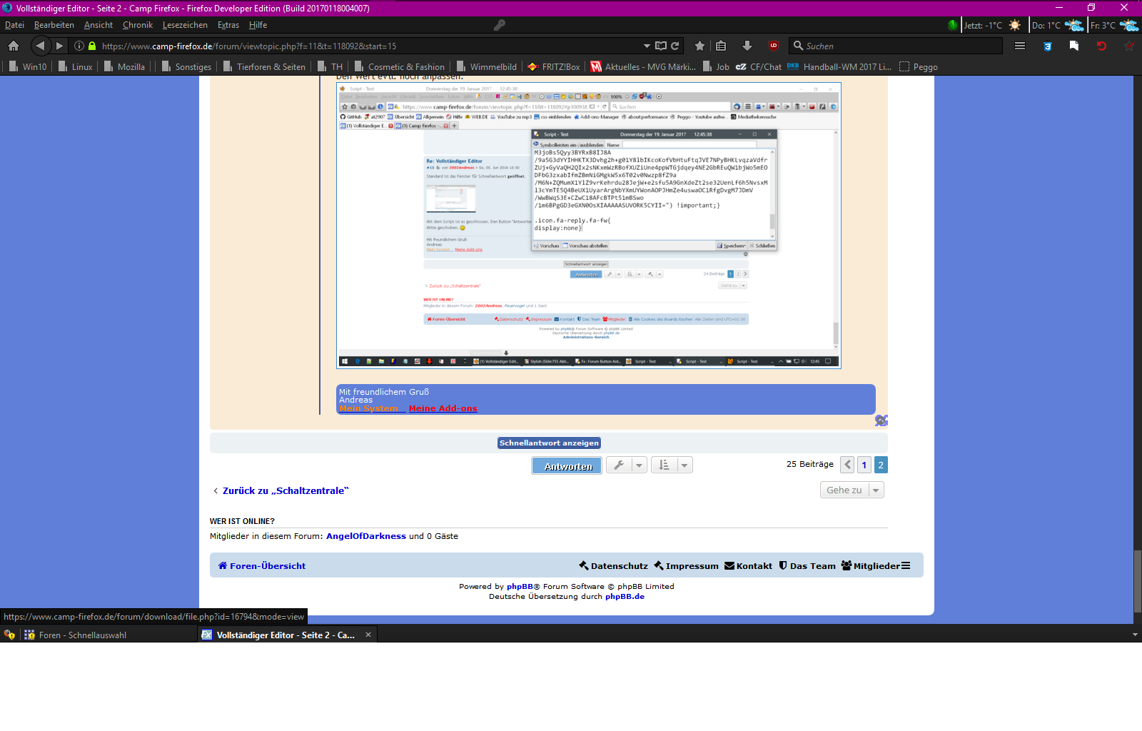 muss mit der neuen Forensoftware dein Code aus #6 bzw. #8 irgendwie abgeändert werden ? Denn seit dem taucht der "Antwort" Button so mittig nicht mehr bei mir auf. Er sitzt wieder ganz links.