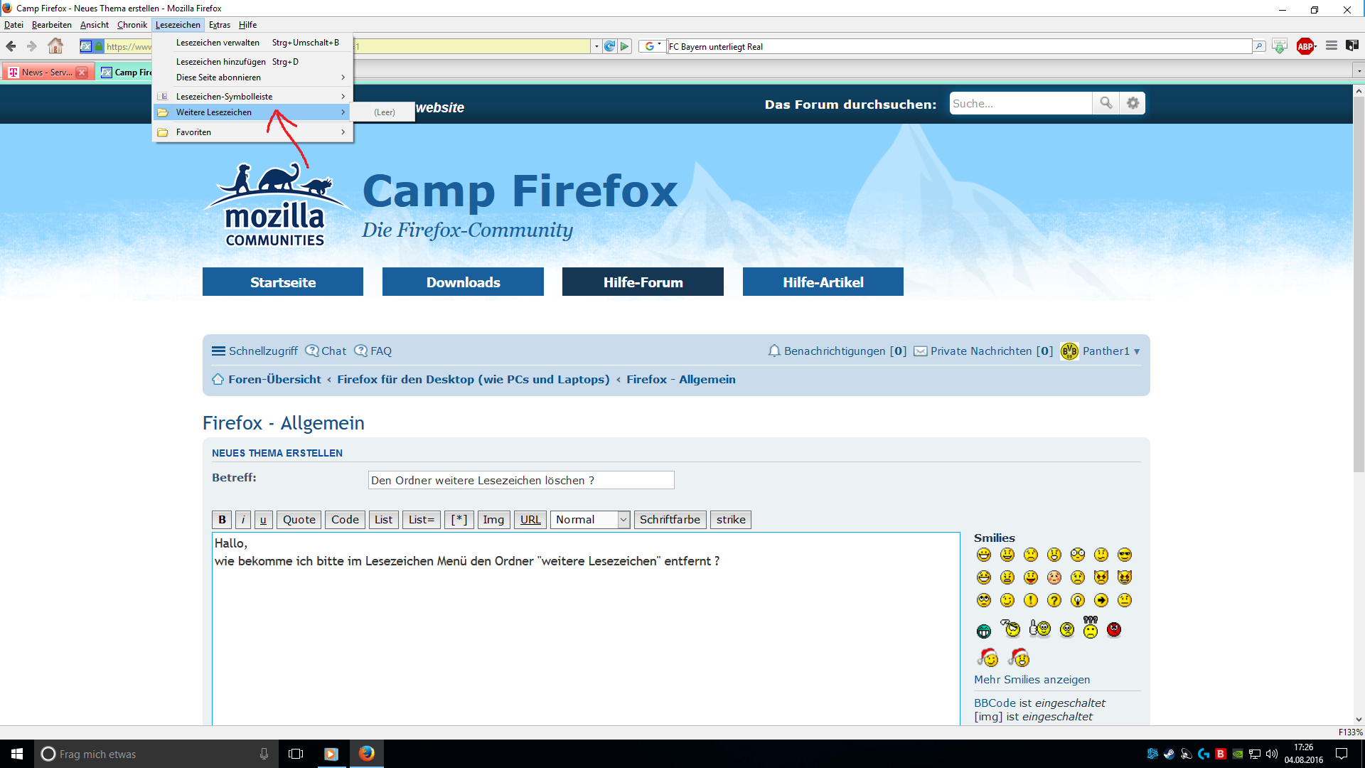 Mir geht es nur um den Eintrag in der Menüleiste unter Lesezeichen - NICHT um die Sidebar