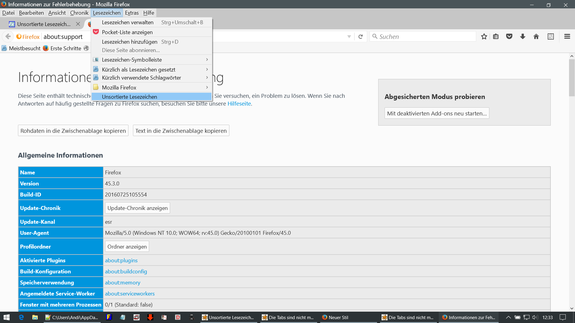 entweder muss ich zum Augenarzt oder seit FF 48.0 sind die "unsortierten Lesezeichen" verschwunden.