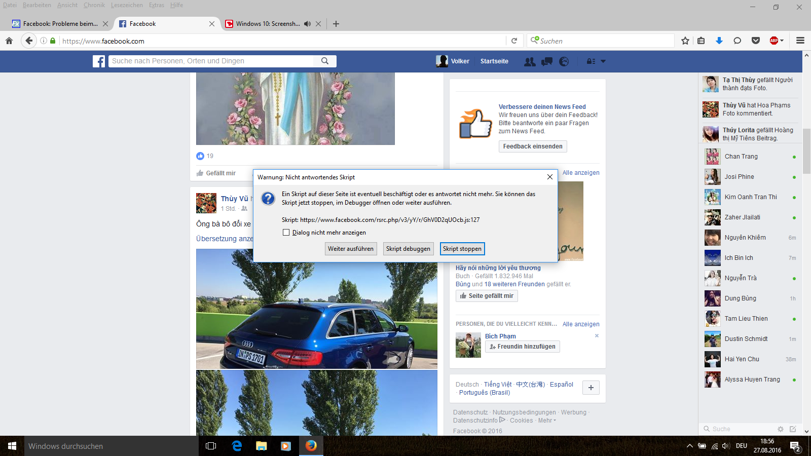 Seit einiger Zeit hängt Firefox und ich bekomme die Meldung " Keine Rückmeldung" angezeigt. Kurz darauf erscheint dann ein Fenster mir der Meldung "Nicht ausführbares Skript".
