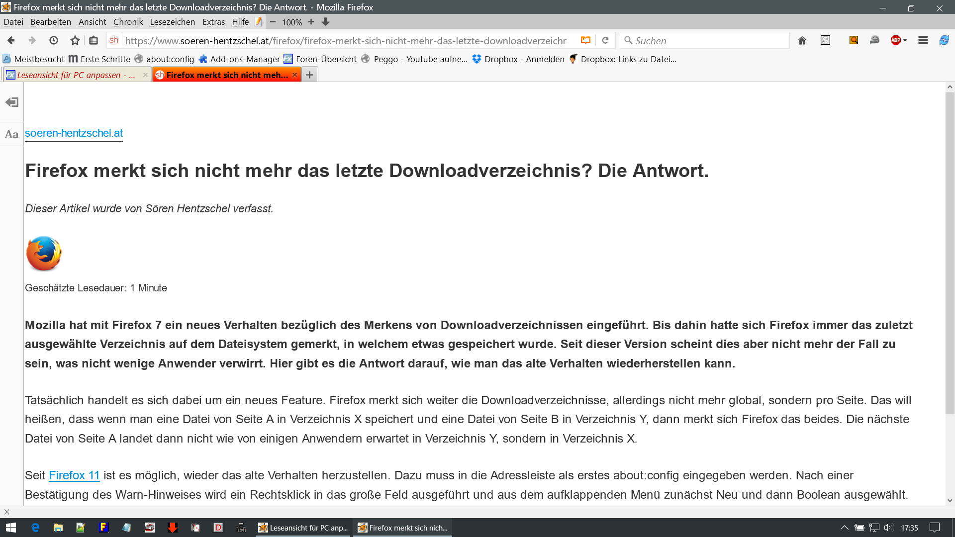 Leseansicht für PC anpassen