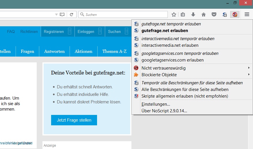 ich habe schon ewig ein Problem mit NoScript: