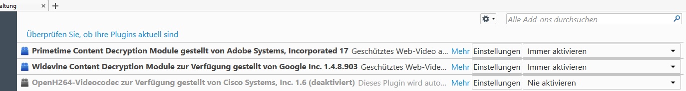 Dies habe ich dann mal in einem Testprofil getan und Firefox hat im Hintergrund diese beiden Plugins (Primetime & Widevine) aus dem Netz gesaugt: