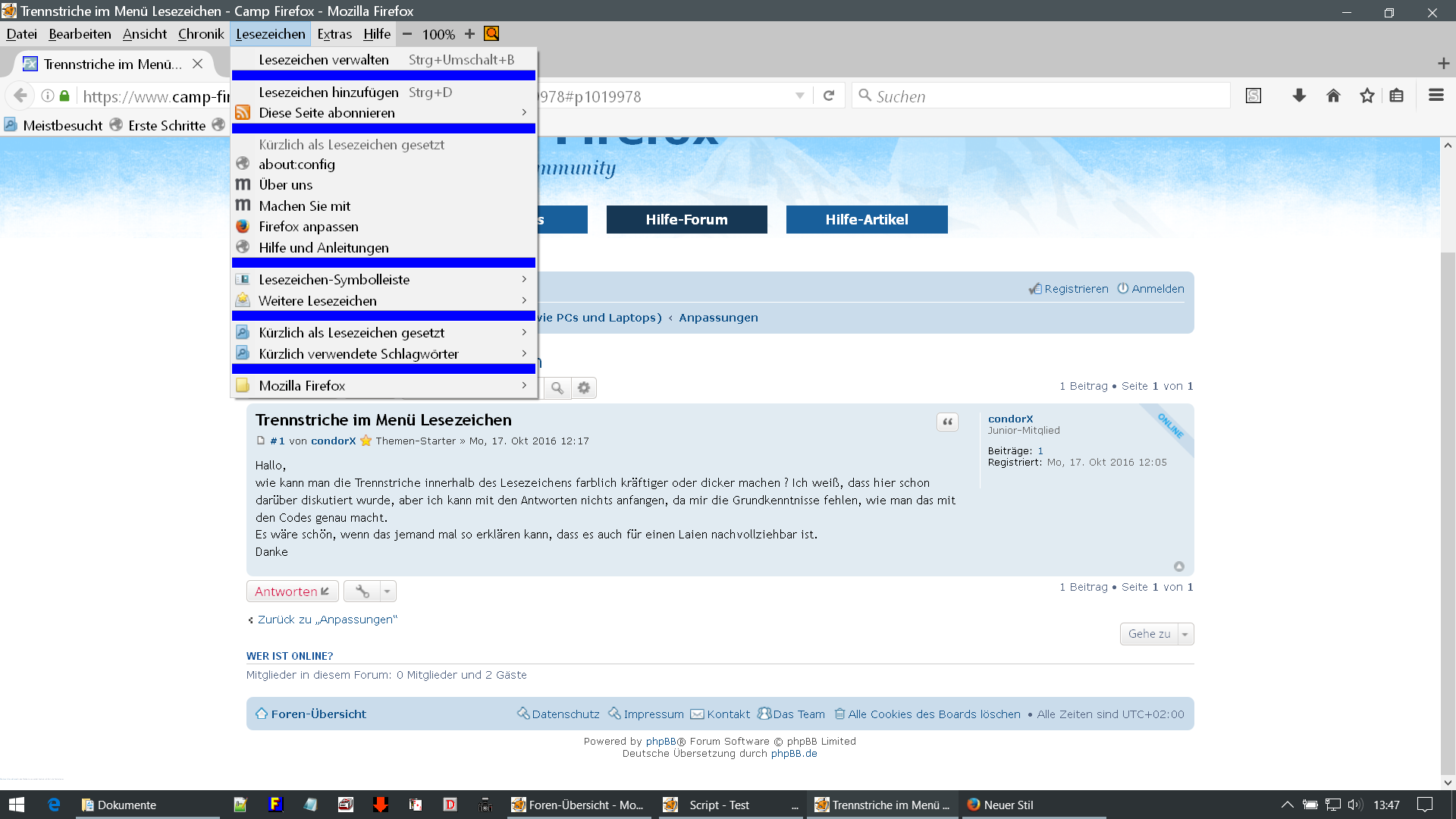 Trennstriche im Menü Lesezeichen