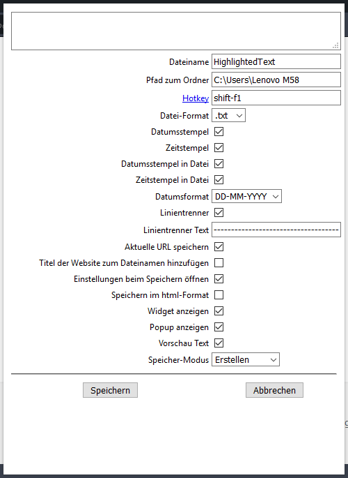 Oder so: Text kopieren, Notepad öffnen, abspeichern. Beides ist mir zu umständlich.