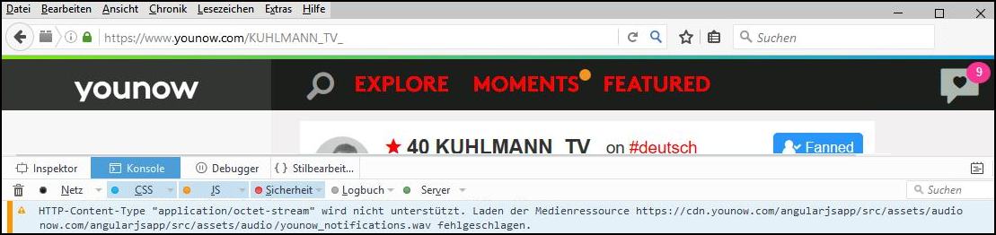 HTTP-Content-Type "application/octet-stream" wird nicht unterstützt. Laden der Medienressource https:~~cdn.younow.com~angularjsapp~src~assets~audio~younow_notifications.wav fehlgeschlagen.