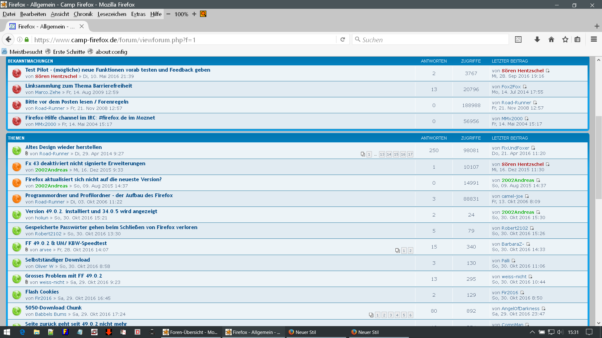 seit der FF Version 49.0.2 fehlen hier im Forum linksseitig die Symbole.