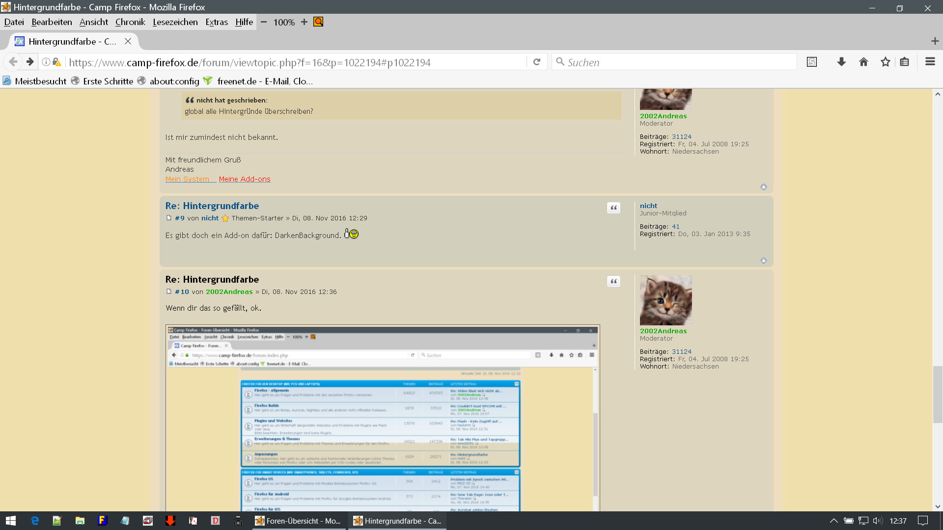 wenn eine Seite eigenen Hintergrund verwendet, wie zb camp-firefox, finde ich das OK, nur das Weiß is mir zu grell.