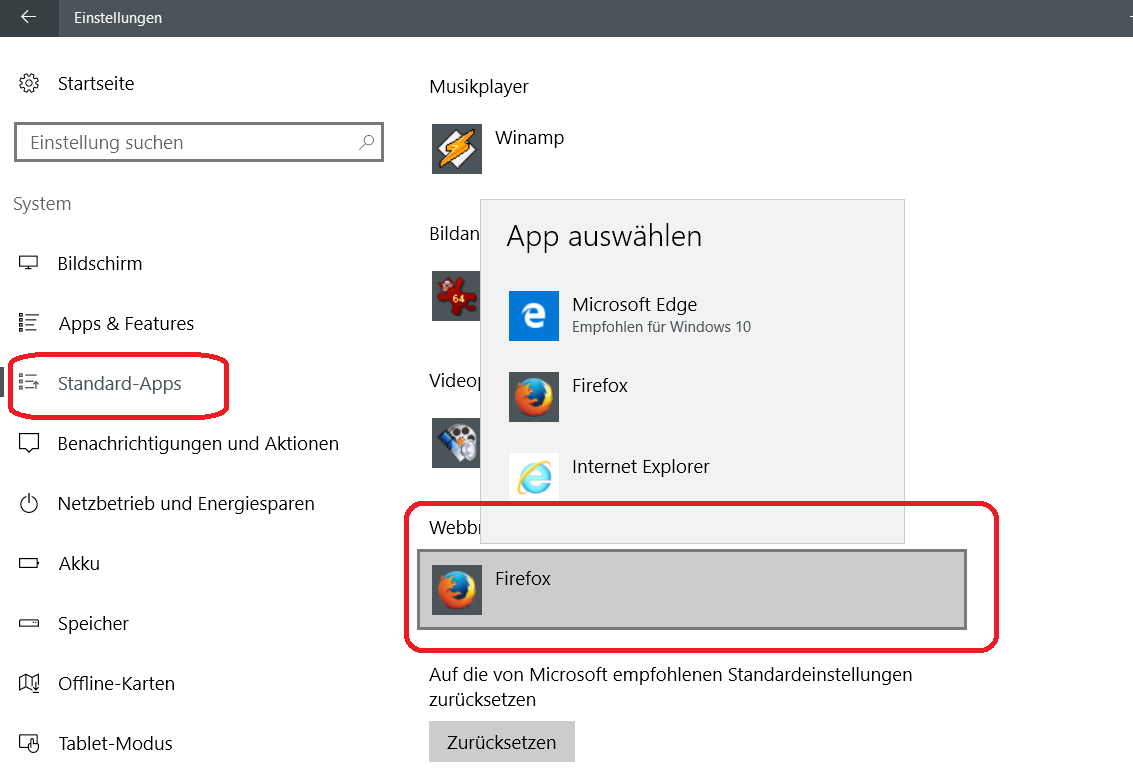 Seit Update auf Win 10 war es so: bei jedem Start von Firefox erschien die Meldung, dieser sei nicht mein Standardbrowser,