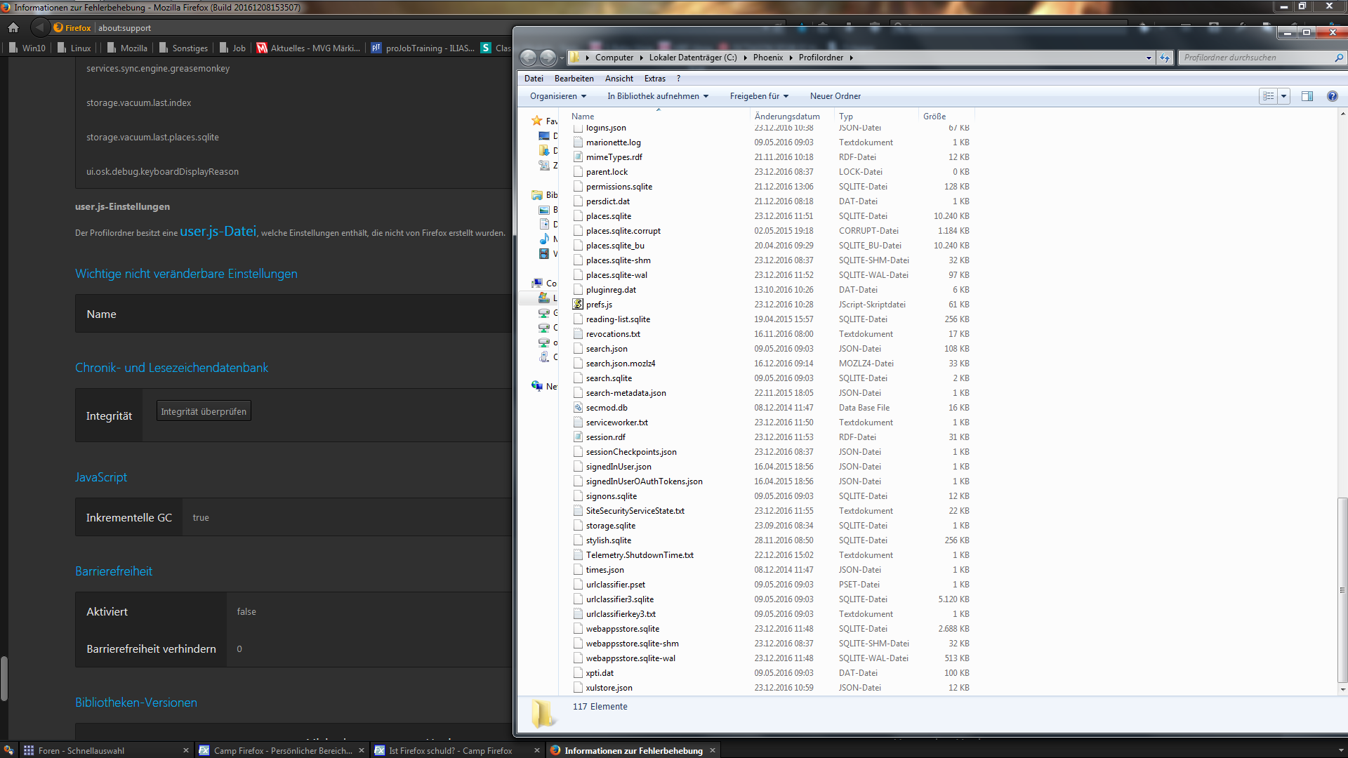 Der Profilordner besitzt eine user.js-Datei, welche Einstellungen enthält, die nicht von Firefox erstellt wurden.