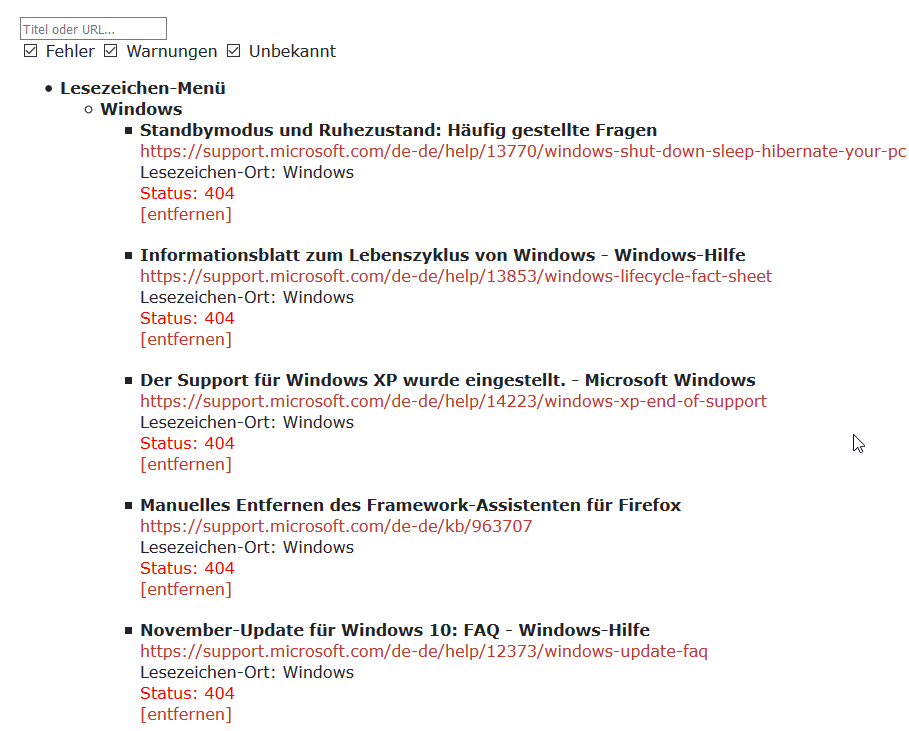 Webseiten mit 404 Fehler finden