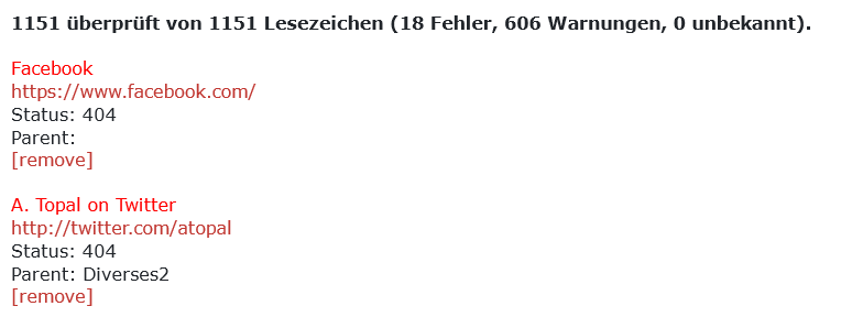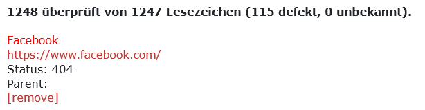 Er hat 1 Lesezeichen mehr überprüft als vorhanden war.