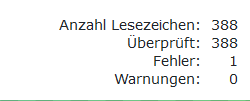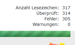 Interessant ist, dass dieser knappe Unterschied zwischen überprüften und fehlerhaften Lesezeichen sich von Anfang an durchzieht. Das könnte zwar bei mir durchaus sein, da ich bisher mit Lesezeichenpflege nicht viel am Hut hatte, aber trotzdem.