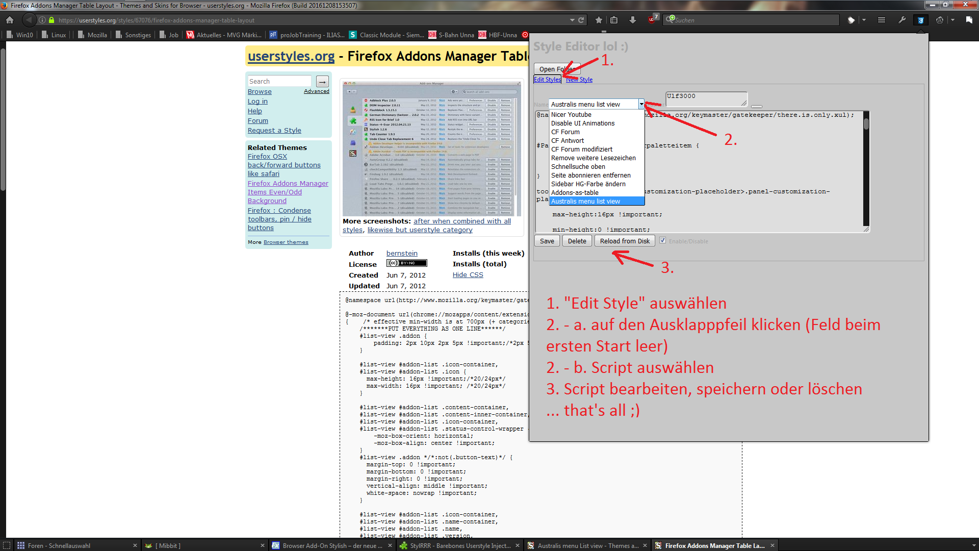 Nachdem Stylish ja in Verruf geraten ist (mehr dazu hier) und einige User ggf. Probleme mit der Handhabung des Add-ons StylRRR als Ersatz für genanntes Stylish haben, habe ich mal was zur Handhabung von StylRRR heraus gefunden.